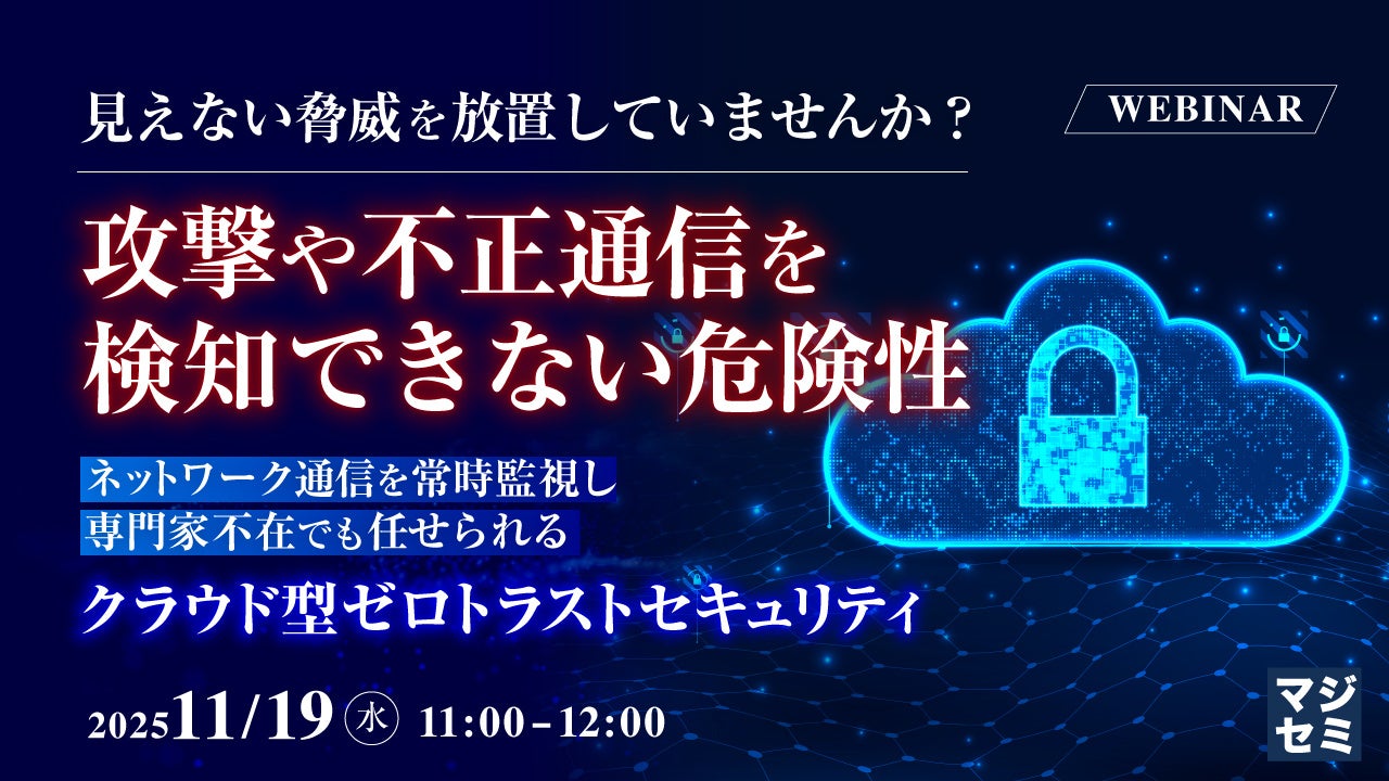 マジセミ株式会社は「見えない脅威を放置していませんか?攻撃や不正通信を検知できない危険性」というテーマのウェビナーを開催します。