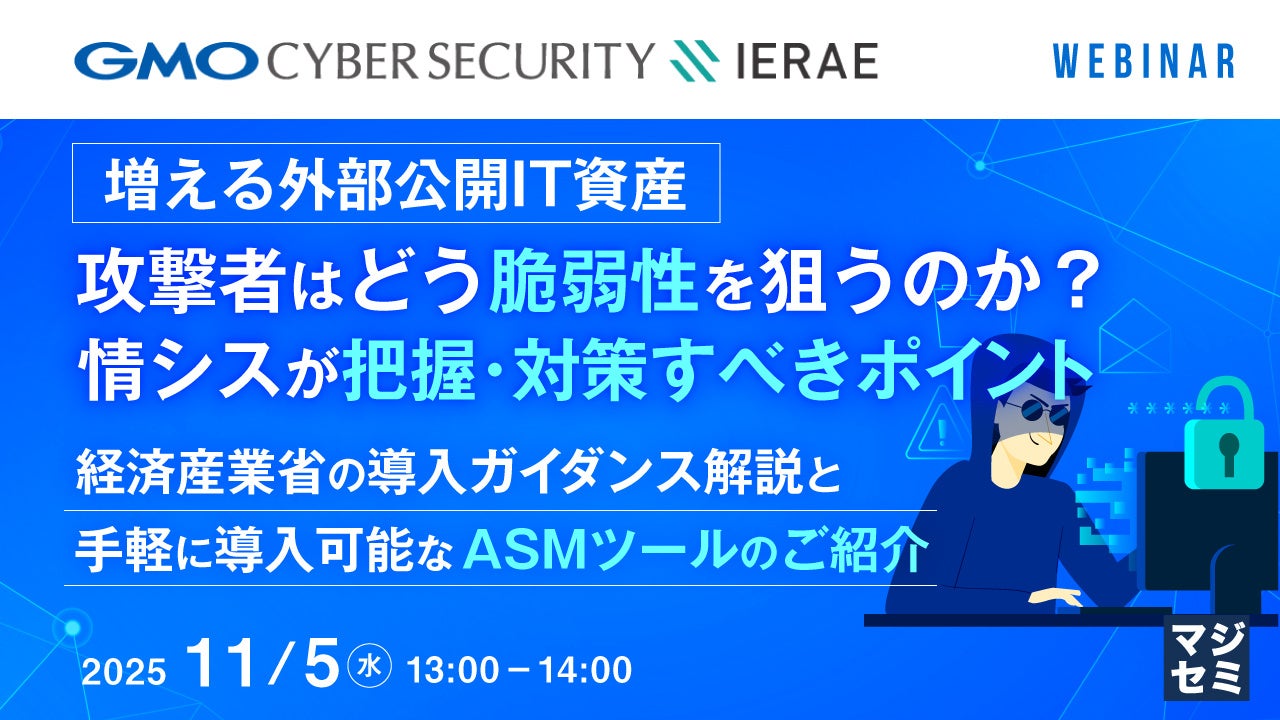 マジセミ株式会社は「増える外部公開IT資産、攻撃者はどう脆弱性を狙うのか? 情シスが把握・対策すべきポイント」というテーマのウェビナーを開催します。