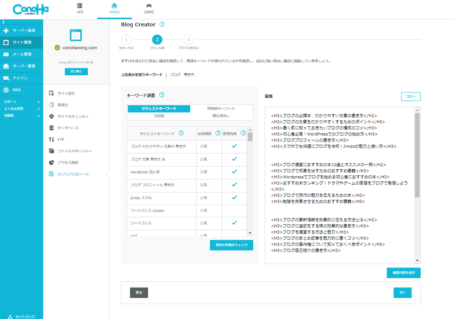 ■『Blog Creator』サービス詳細:https://www.conoha.jp/wing/function/blog-ai/