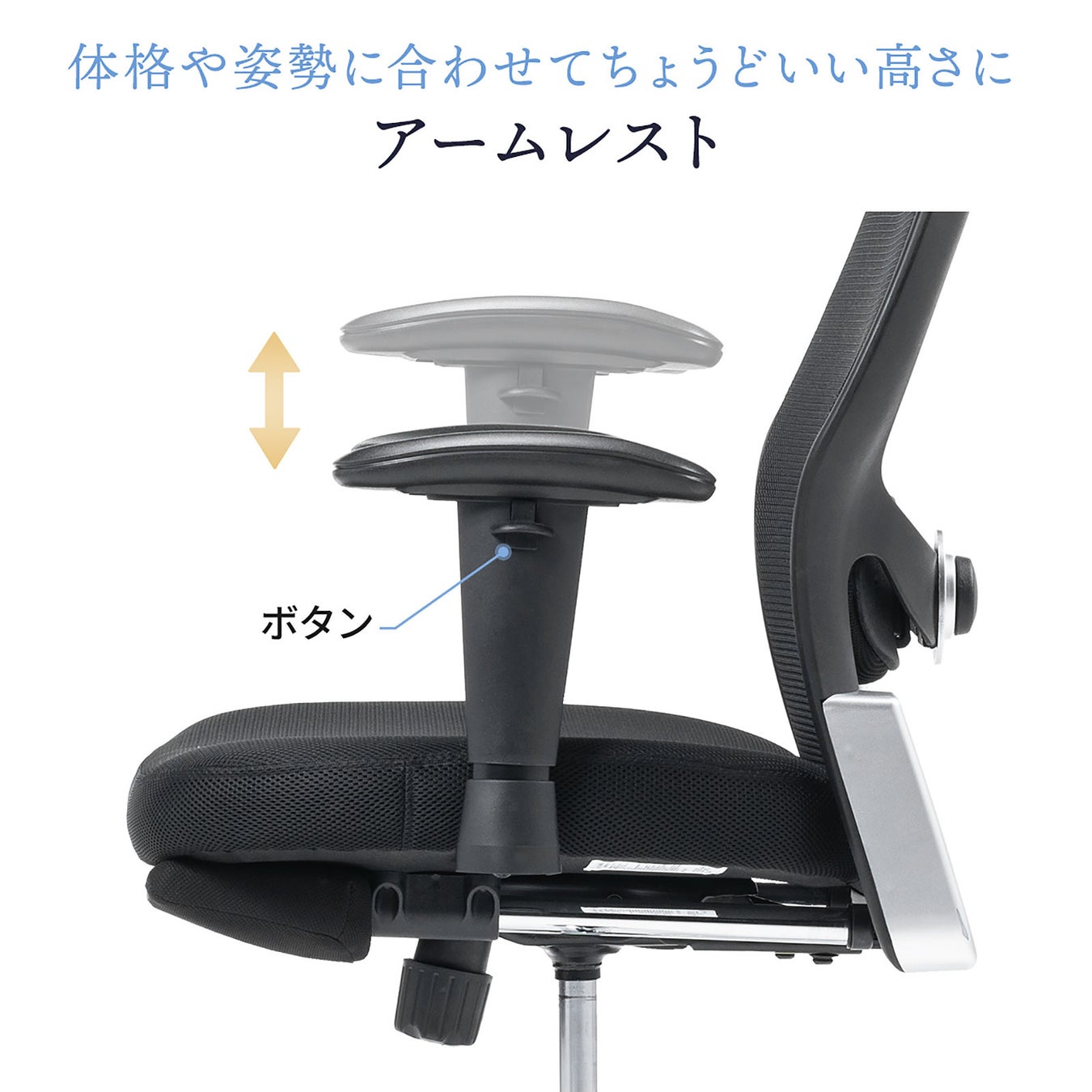 背もたれはハイバックで全面メッシュ生地です。