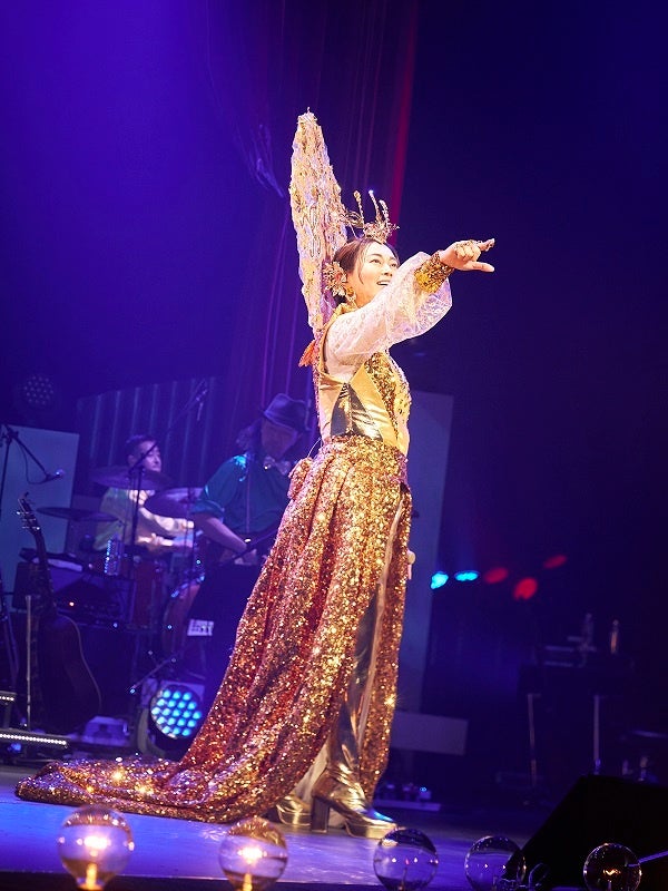 会場にはこの日を楽しみにしていた1500人のファンが詰めかけ、開演前からペンライトが激しく揺れ、手拍子と「きよしー!」という掛け声が飛び交う。注目のオープニングナンバーは「龍翔鳳舞」だ。黄金色に輝く派手な衣装で登場した氷川は、スケールの大きなサウンドに乗せ、スケールの大きな歌で一気にその世界に引き込んでいく。「きよしのズンドコ節」では客席とコール&レスポンスを楽しんでいた。きりっとした紋付袴姿で「大井追っかけ音次郎」他演歌もたっぷりと聴かせてくれた。