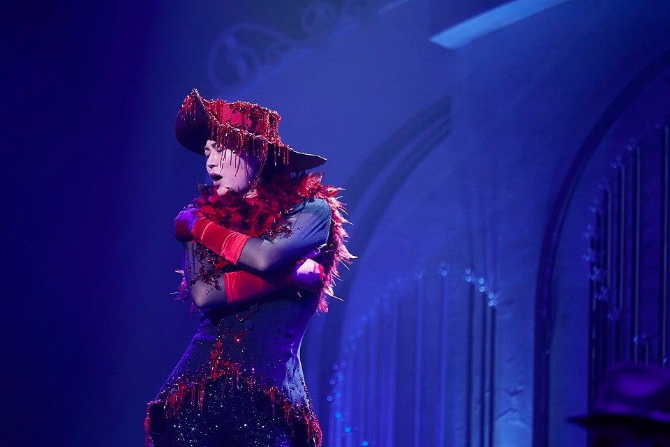会場の空気が一変し“モンスター”の世界へ。氷川きよし with t.komuro名義で配信リリースした話題のナンバー「Party of Monsters」(「ゲゲゲの鬼太郎 私の愛した歴代ゲゲゲ」(フジテレビ系)エンディングテーマ/6月4日CDリリース)を披露。4月に公開し、現在までに約80万回再生(5月8日現在)を記録しているMUSIC VIDEOの世界観を再現するように、激しく照明が交錯する中で、ラップ調の歌を激しく歌いながら踊ると総立ちの会場の温度がグッと上がるのを感じた。そして「限界突破×サバイバー」で本編を締めくくった。