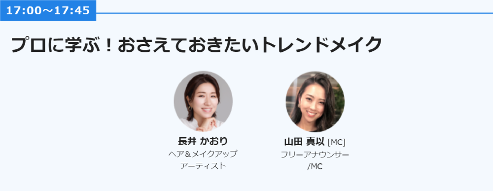 17:00〜17:45 ⑤プロに学ぶ!おさえておきたいトレンドメイク