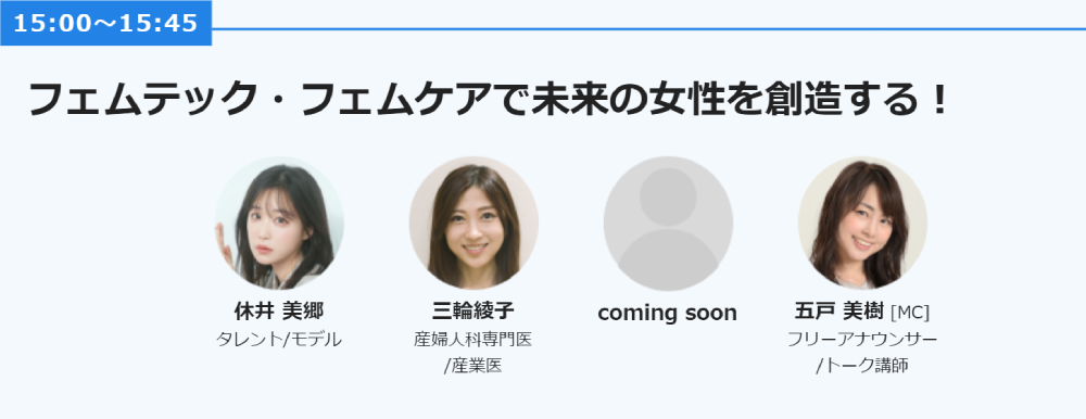 15:00〜15:45 ③フェムテック・フェムケアで未来の女性を創造する!