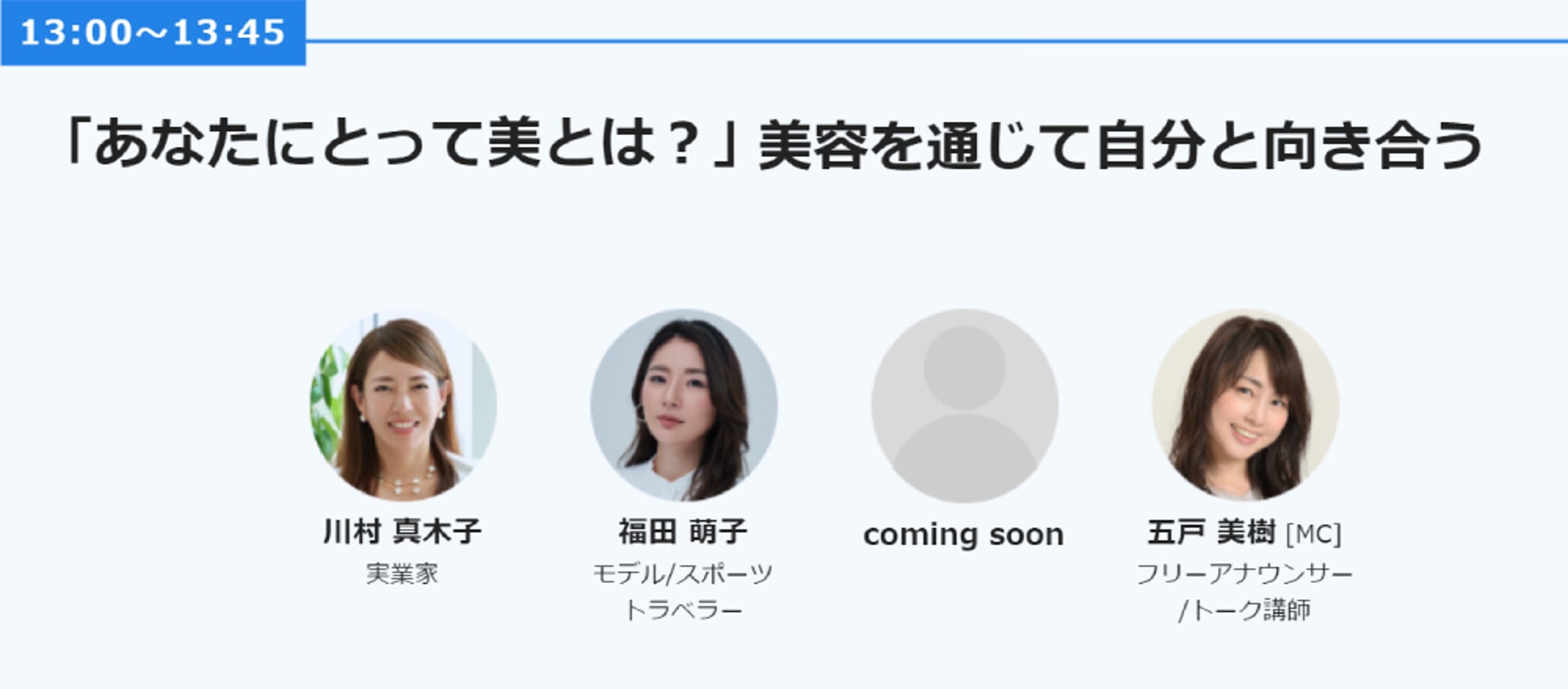 このトークセッションでは、美容というテーマを通じて自分らしく生きる方法について探っていきます。