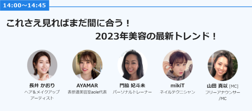 14:00~14:45 ②これさえ見ればまだ間に合う!2023年美容の最新トレンド!