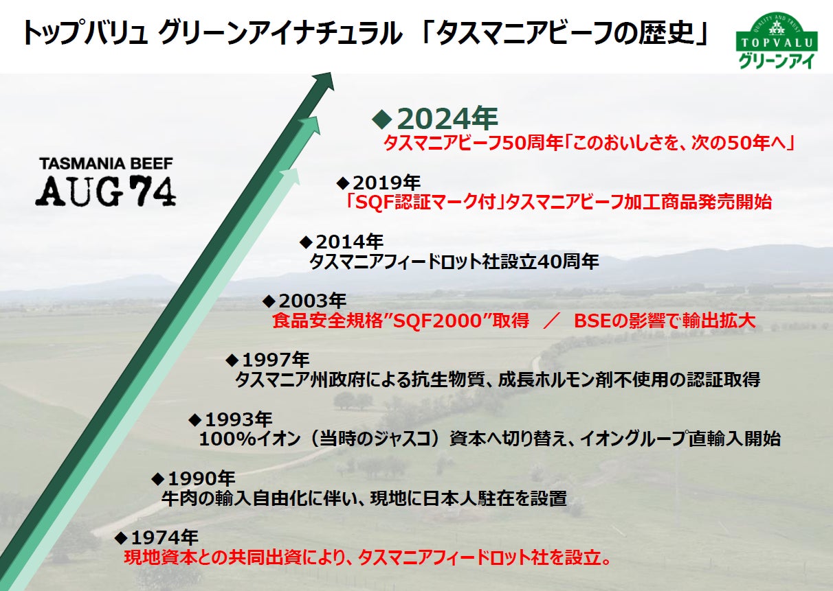 イオンが1974年にオーストラリアのタスマニア島で「タスマニアビーフ」の肥育を始めてから、おかげさまで50周年を迎えます。