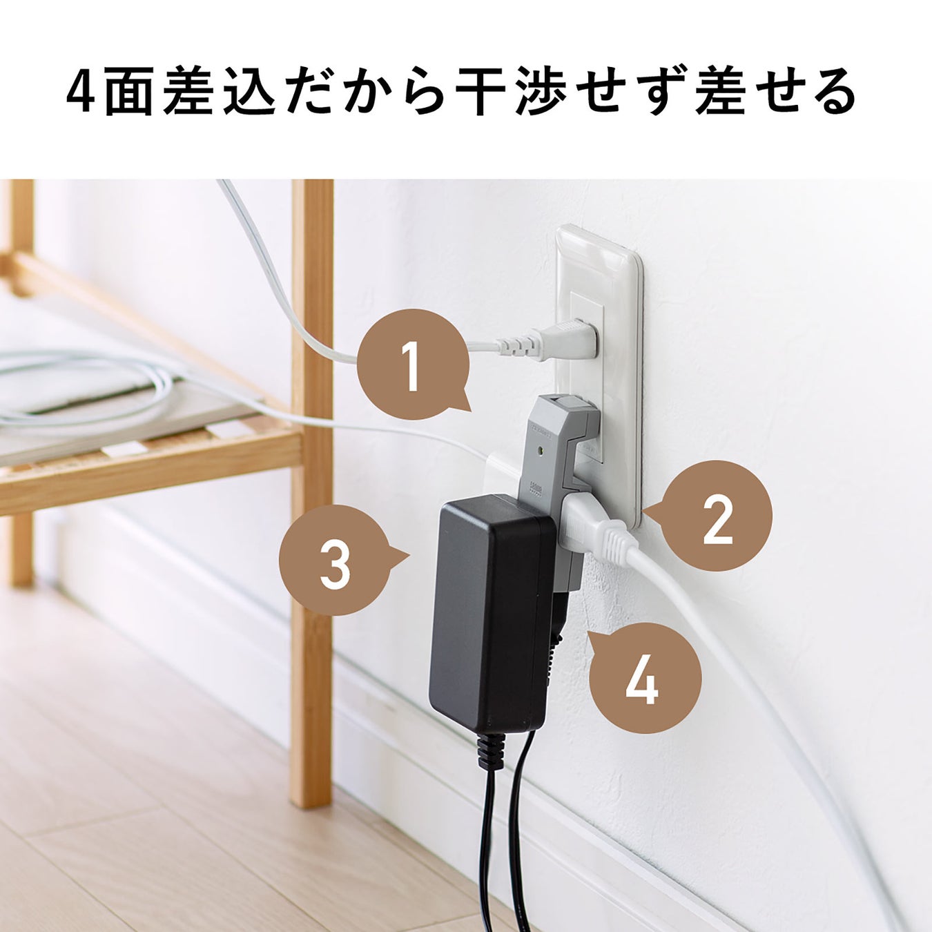 4方向からプラグを差せるコンパクトな電源タップを発売