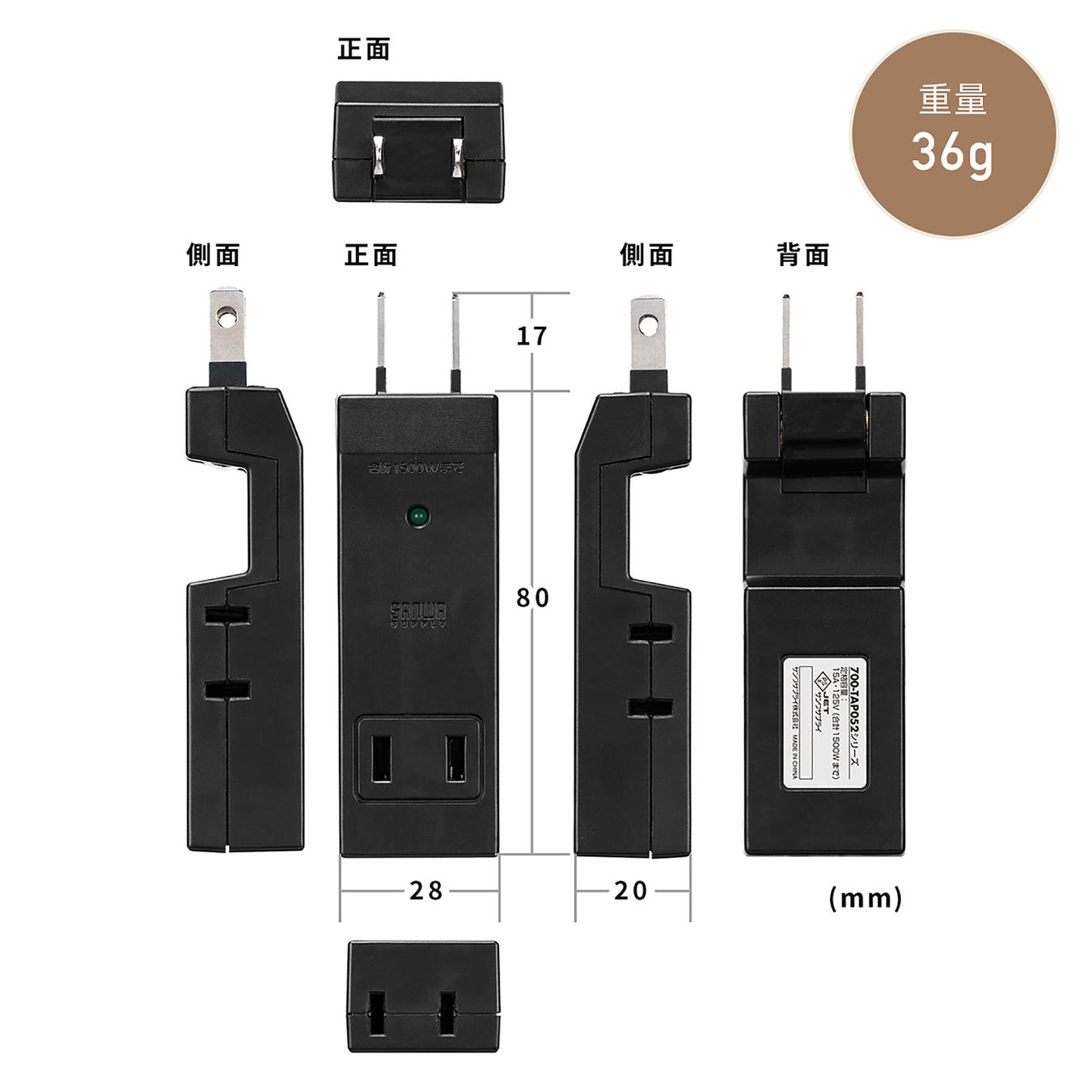 本製品のサイズはW28×D20×H80mm、 重量は36gです。