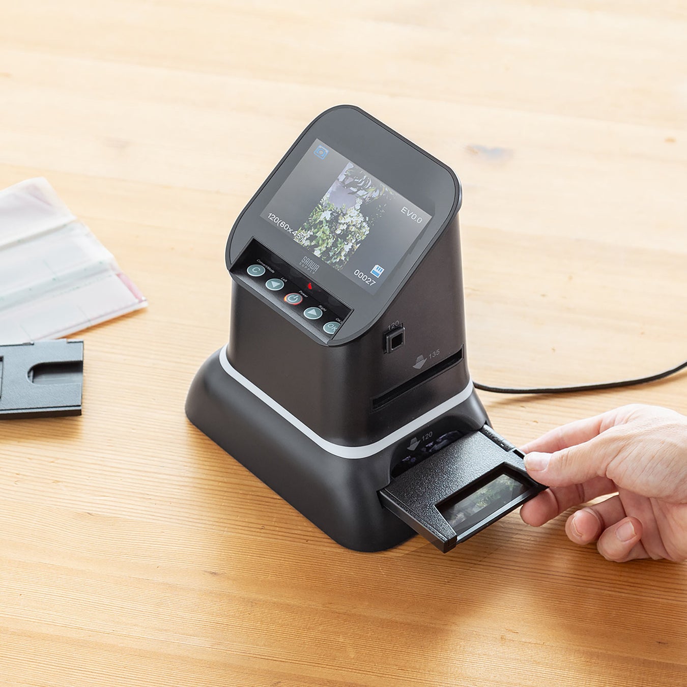 本製品は、120ブローニーフィルムに対応したフィルムスキャナーです。フィルムをスキャンして、簡単にデジタル化できます。