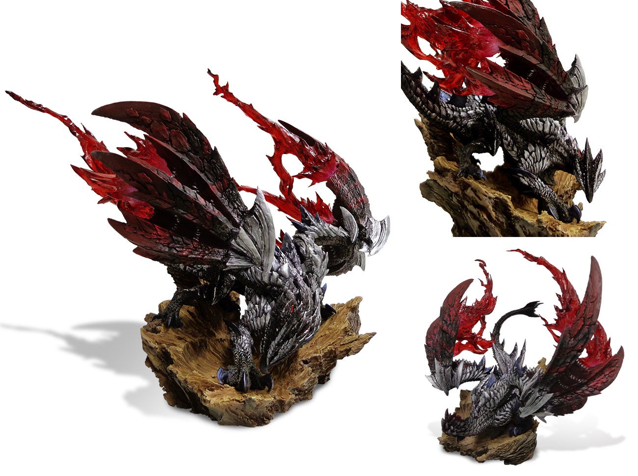 龍気が活性化し、体色を変化させた怒れるバルファルクが地表に降り立った様を表現。翼からのびる龍気エフェクトはクリア素材をふんだんに使用し、台座にはクレーターを造形した豪華な仕上がり。