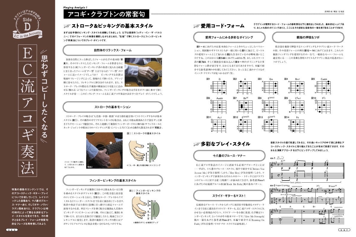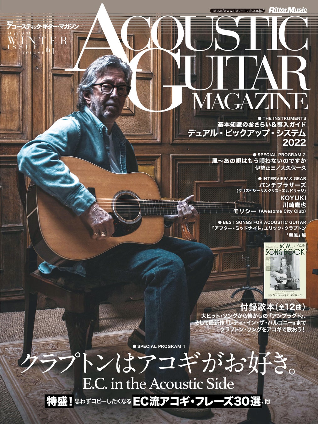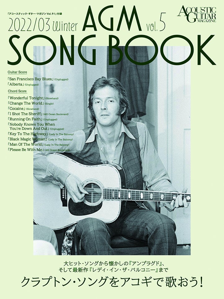おまけの歌本“AGM SONG BOOK Vol.5”もクラプトン尽くしの一冊。「ワンダフル・トゥナイト」や「チェンジ・ザ・ワールド」といった代表曲から、最新作でもとりあげられている「ブラック・マジック・ウーマン」や「ノーバディ・ノウズ・ユー」など、全12曲をコード・ダイアグラム&歌詞付きで掲載しています。