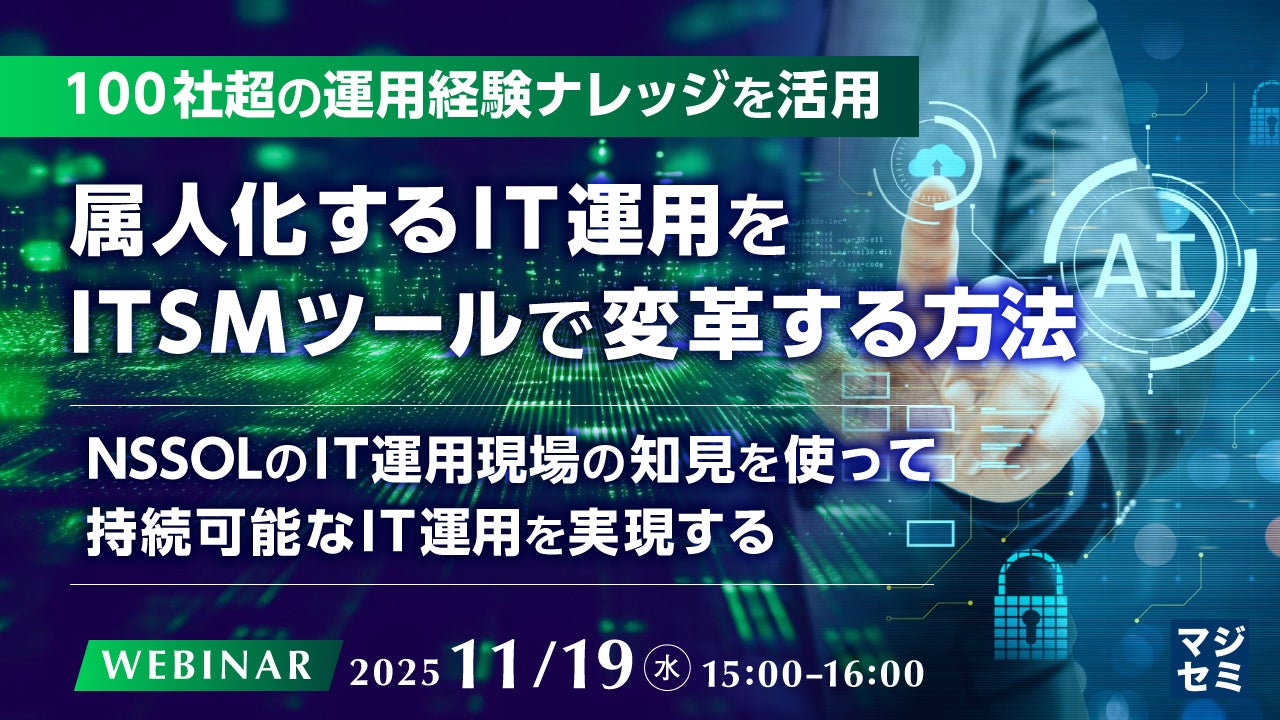 マジセミ株式会社は「【100社超の運用経験ナレッジを活用】属人化するIT運用をITSMツールで変革する方法」というテーマのウェビナーを開催します。