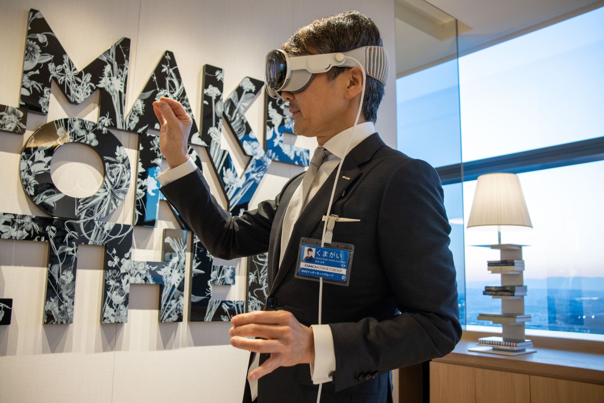 ▲Apple Vision Proを体験する GMOインターネットグループ代表 熊谷正寿