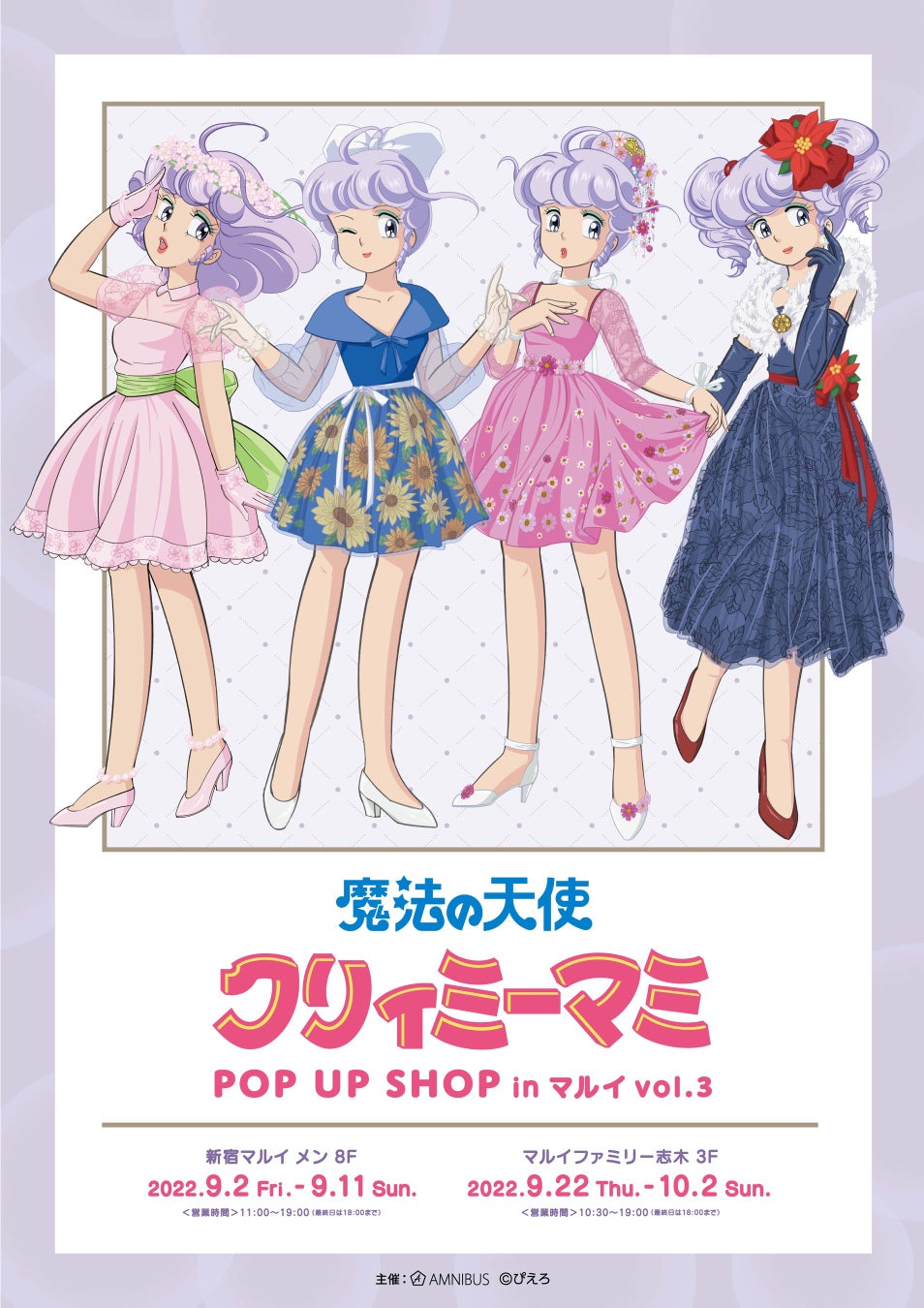 2022年9月2日(金)より新宿マルイ メンにて、9月22日(木)よりマルイファミリー志木にて『魔法の天使 クリィミーマミ』の三回目となるイベント「魔法の天使 クリィミーマミ POP UP SHOP in マルイ vol.3」の開催が決定いたしました。