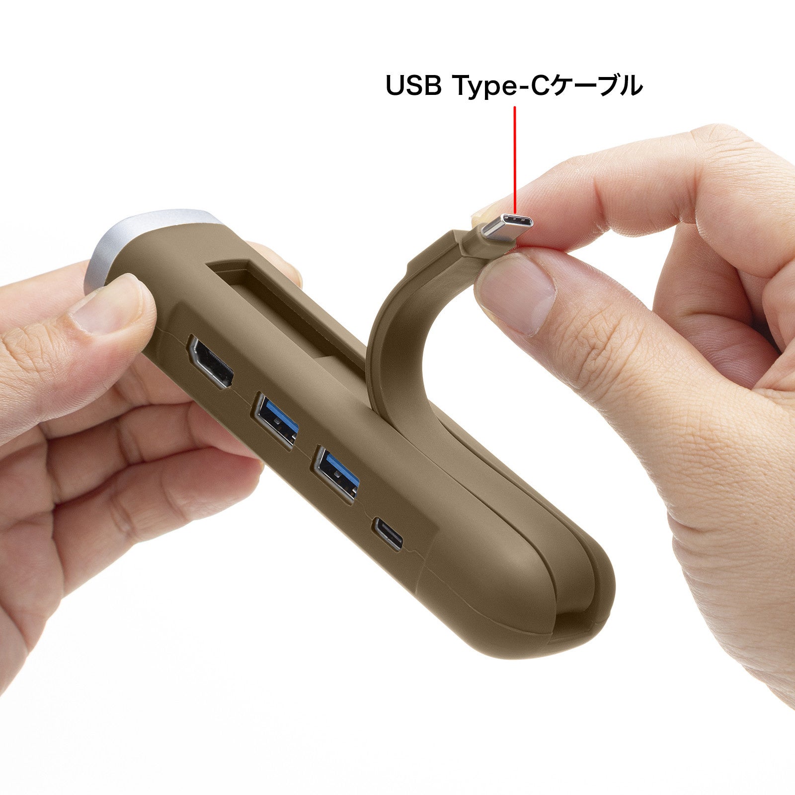 Type-Cケーブル1本で、HDMIディスプレイ、USB機器、有線LANの拡張と接続ができる、Type-Cモバイルドッキングステーションです。移動時はケーブル1本抜くだけで、全てのポートの接続機器をまとめて接続・解除できます。