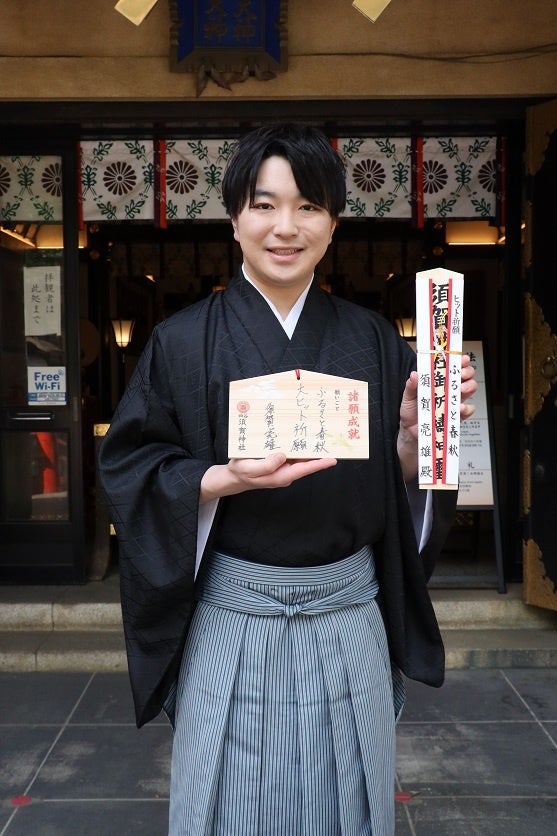 無事にヒット祈願を終えた須賀は「まずはホッとしております。周りの方々の支えに感謝しながら、大ヒットさせられるように、これから一歩一歩頑張ってまいりたいと思います」と笑顔で語った。