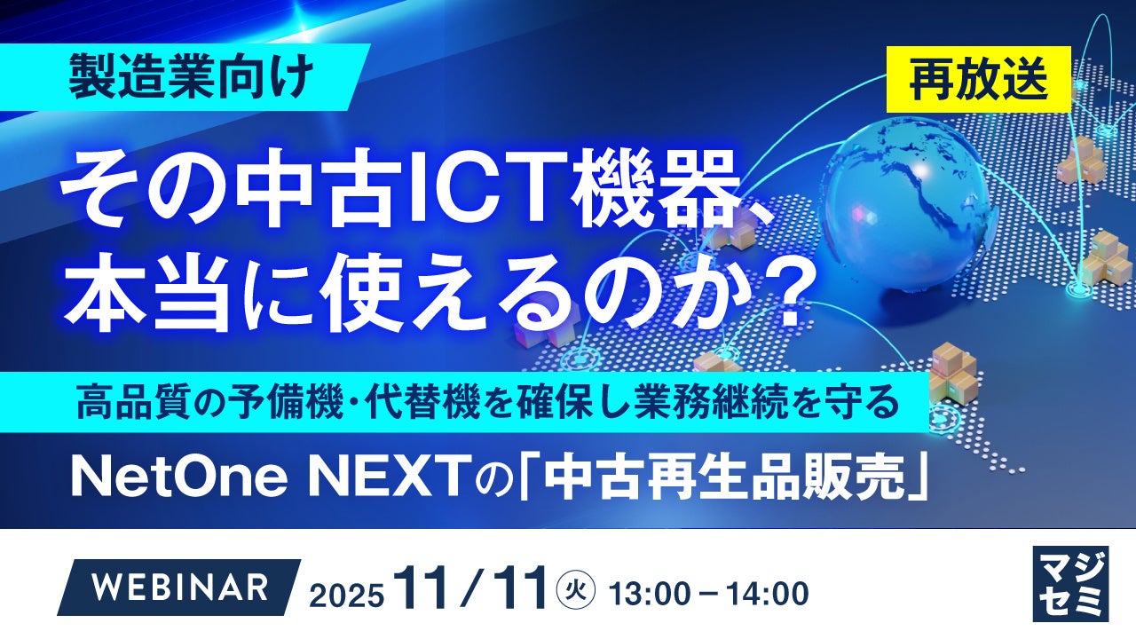 マジセミ株式会社は「(再放送)【製造業向け】その中古ICT機器、本当に使えるのか?」というテーマのウェビナーを開催します。