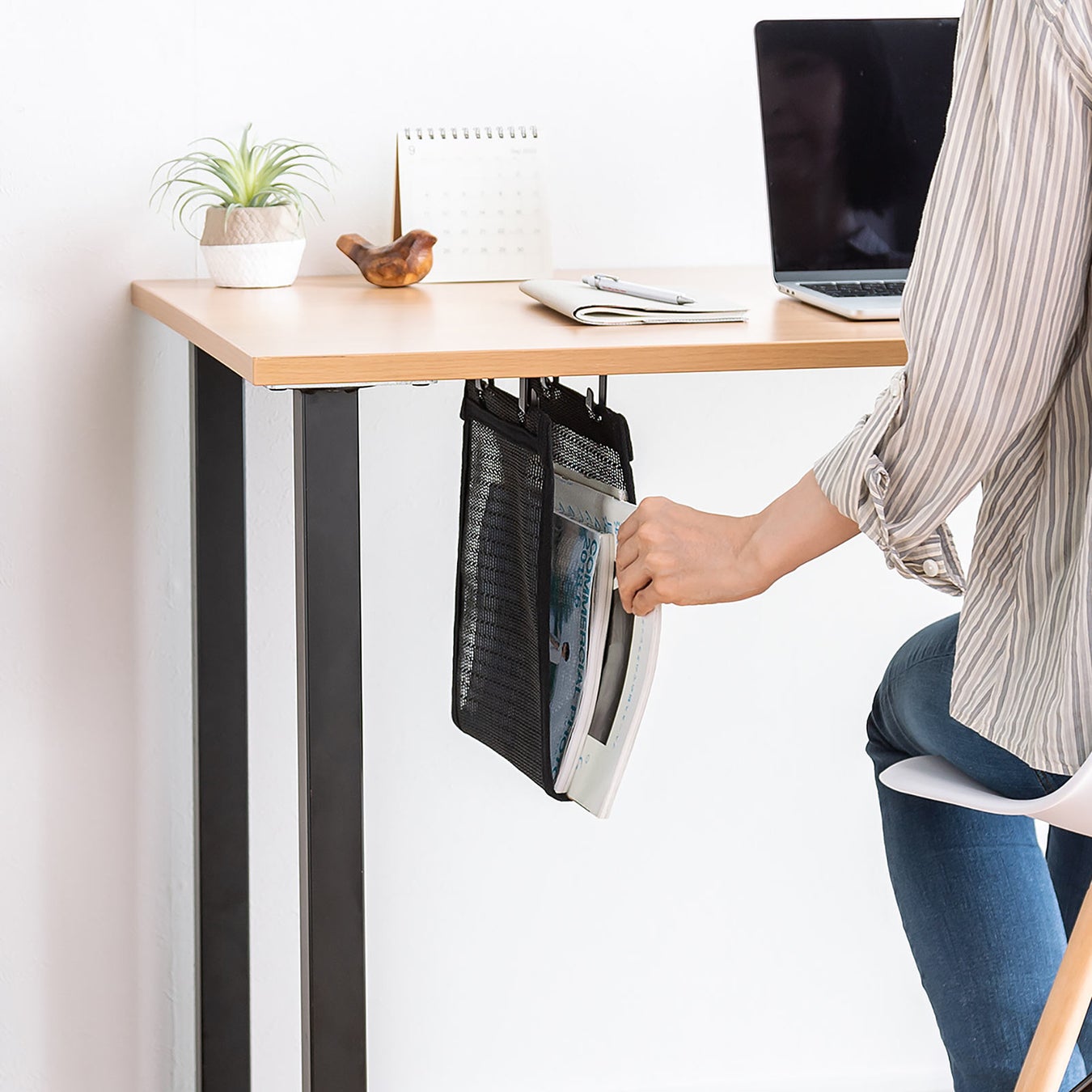 本製品は、既存のデスクにタッピングボルトで簡単に取り付けができるデスク下収納ネットです。引き出しや収納が少ない昇降デスクや、在宅ワークでのスペース拡張、リビングデスクでの小物収納などに最適です。
