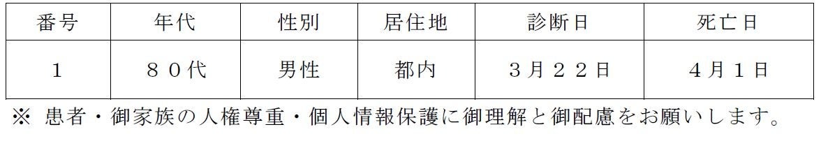 都内で新型コロナウイルスに感染した方が死亡されましたのでお知らせします。