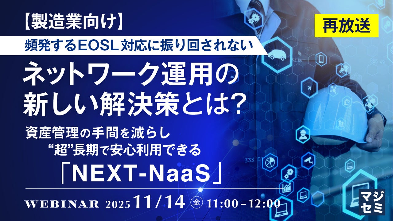 マジセミ株式会社は「(再放送)【製造業向け】頻発するEOSL対応に振り回されない、ネットワーク運用の新しい解決策とは?」というテーマのウェビナーを開催します。