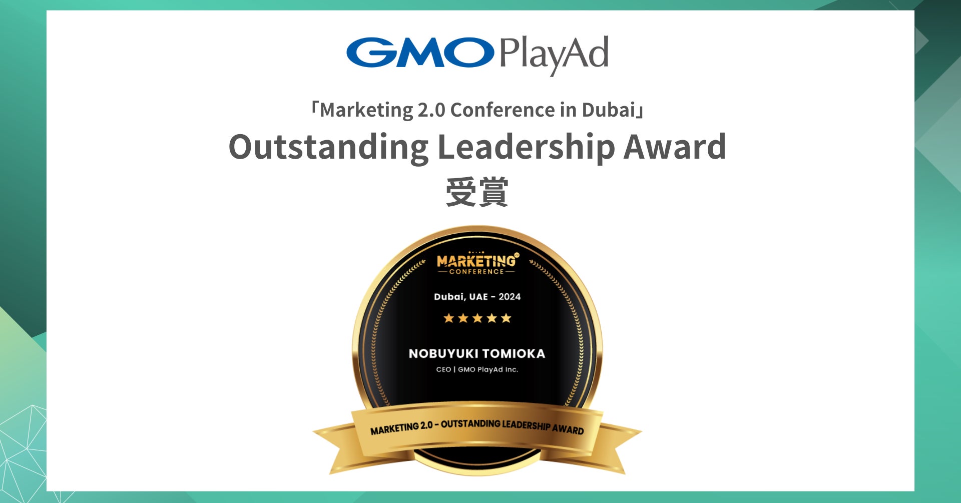 GMOプレイアド、世界的マーケティングイベント「Marketing 2.0 Conference in Dubai」でリーダーシップと革新的なマーケティング戦略を評価するアワード受賞