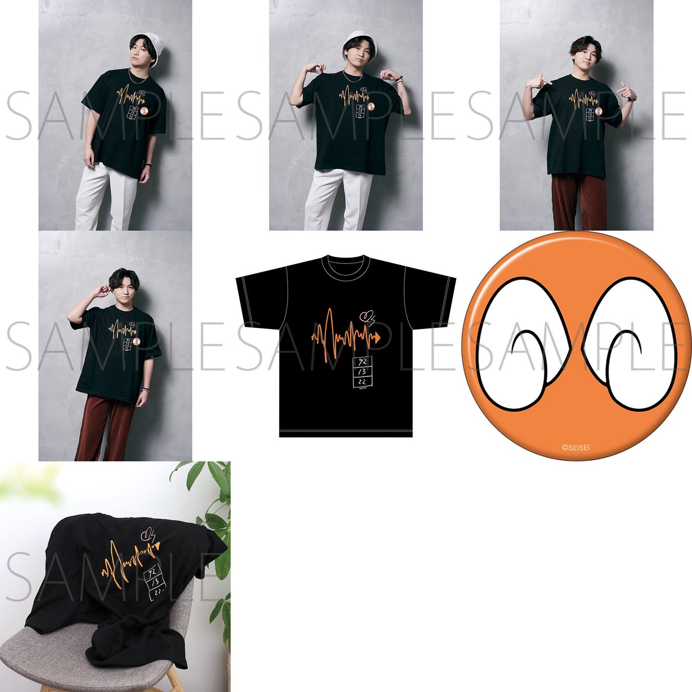 【仕様】Tシャツ:ボディカラー 黒、4色印刷/綿100%、缶バッジ:紙・鉄・PETフィルム製、フルカラー印刷