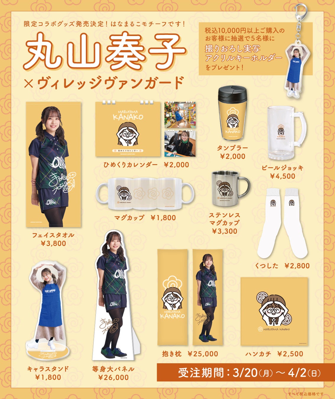 2023年3月20日(月)より、大人気プロ雀士【丸山奏子】とヴィレッジヴァンガードの限定コラボグッズが発売決定!!はなまるこポーズイラストや、撮りおろし実写グッズが勢ぞろい!!