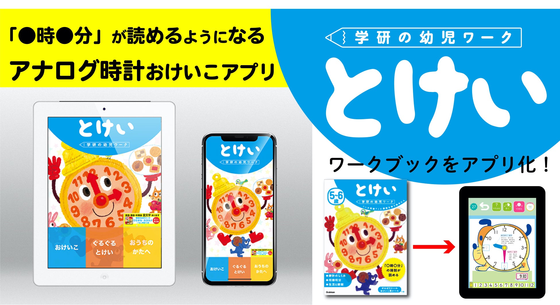■学研の幼児ワーク・人気の『5~6歳とけい』を完全アプリ化