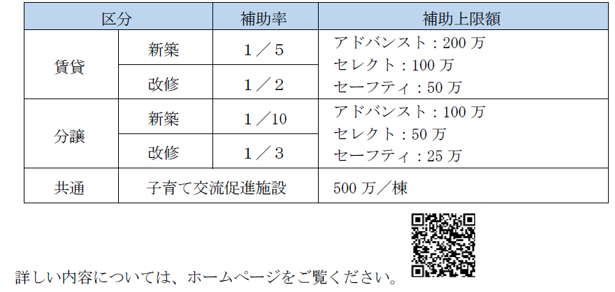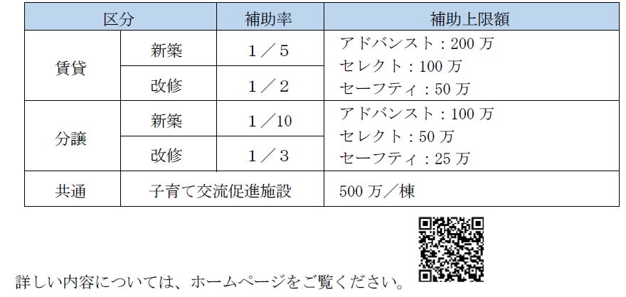 補助率や補助上限額は、賃貸・分譲や新築・改修の区分に応じて認定モデルごとに設定します。