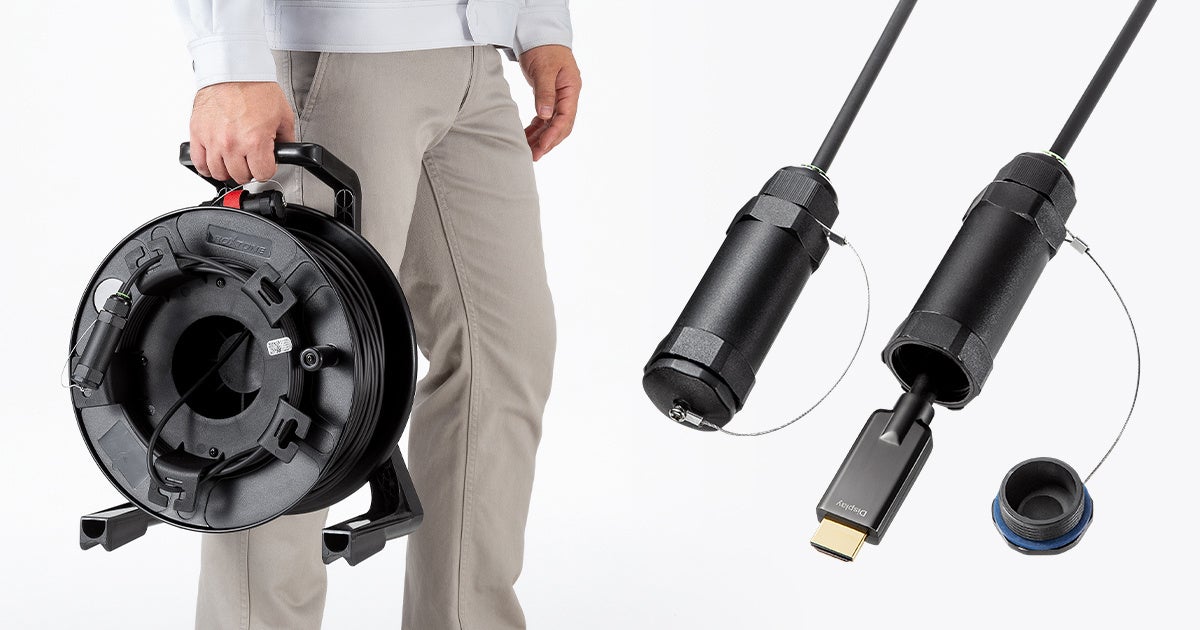 8K・4Kの美しい映像を長距離伝送できる、敷設・収納に便利なドラム付き光ファイバHDMIケーブルを発売