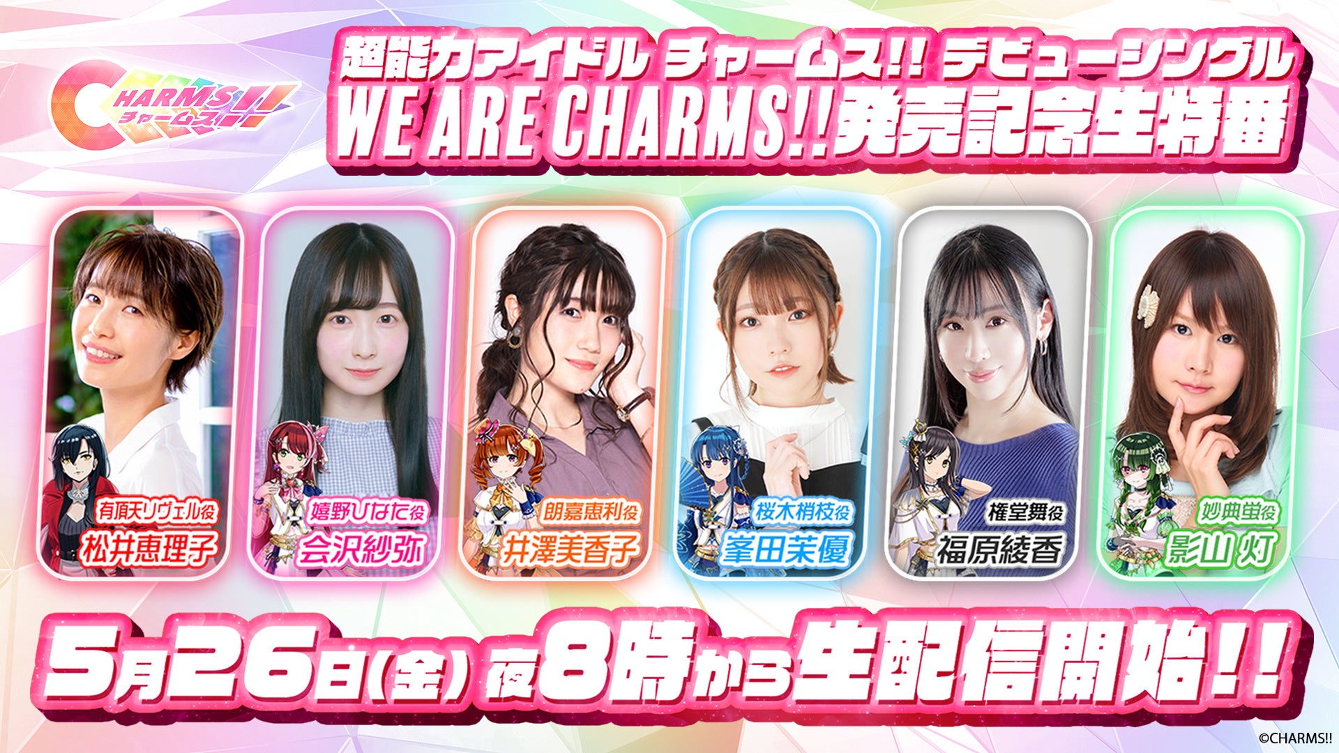 の発売を記念して実施されるこの生特番。CDの発売日である2023年5月26日(金)の20時から、「CHARMS!!」の公式YouTubeチャンネルで配信されます。