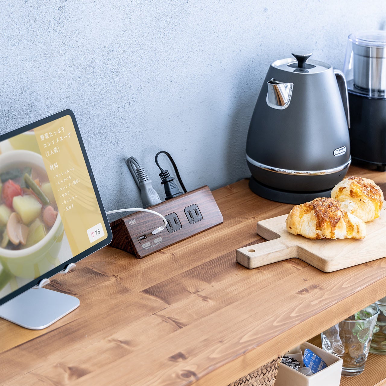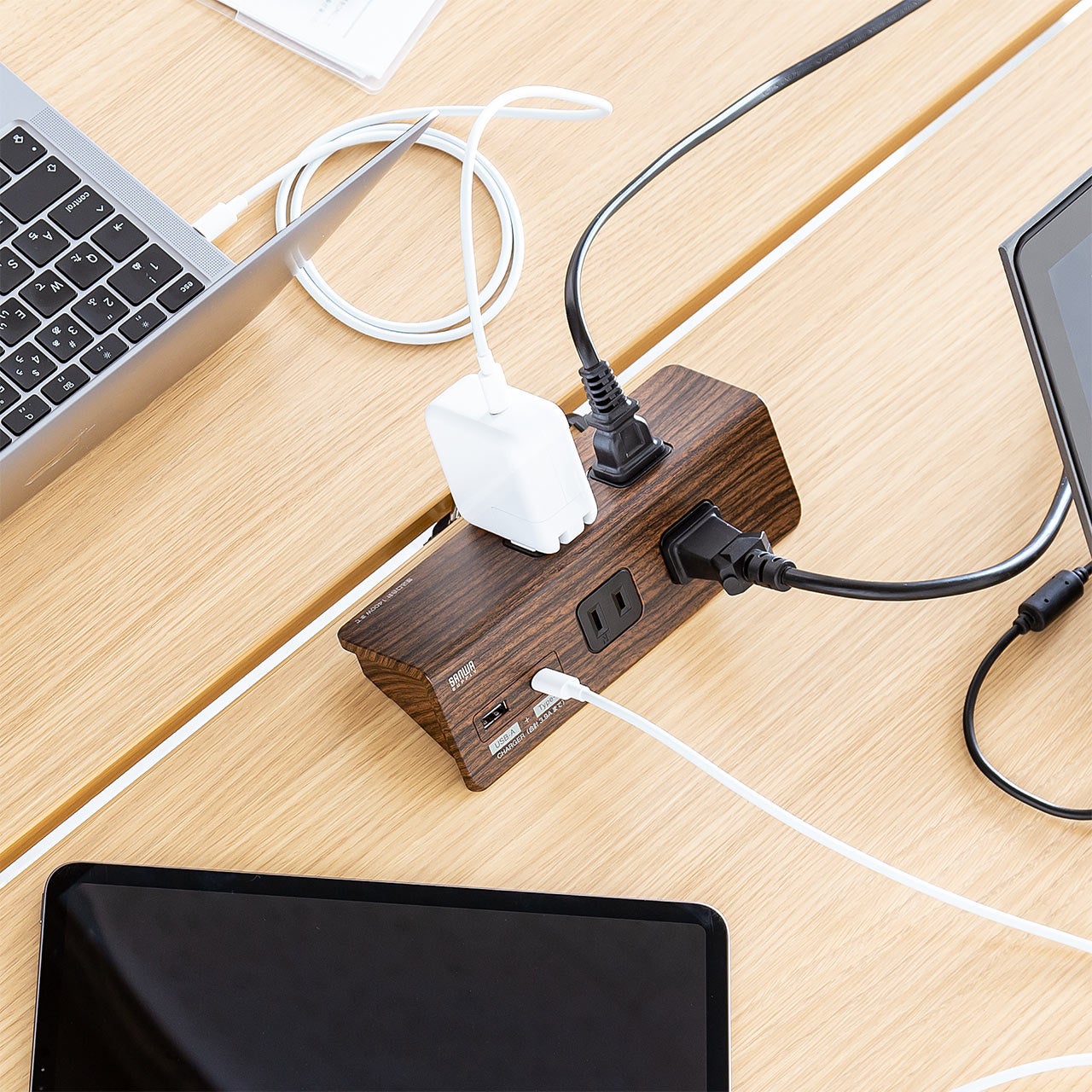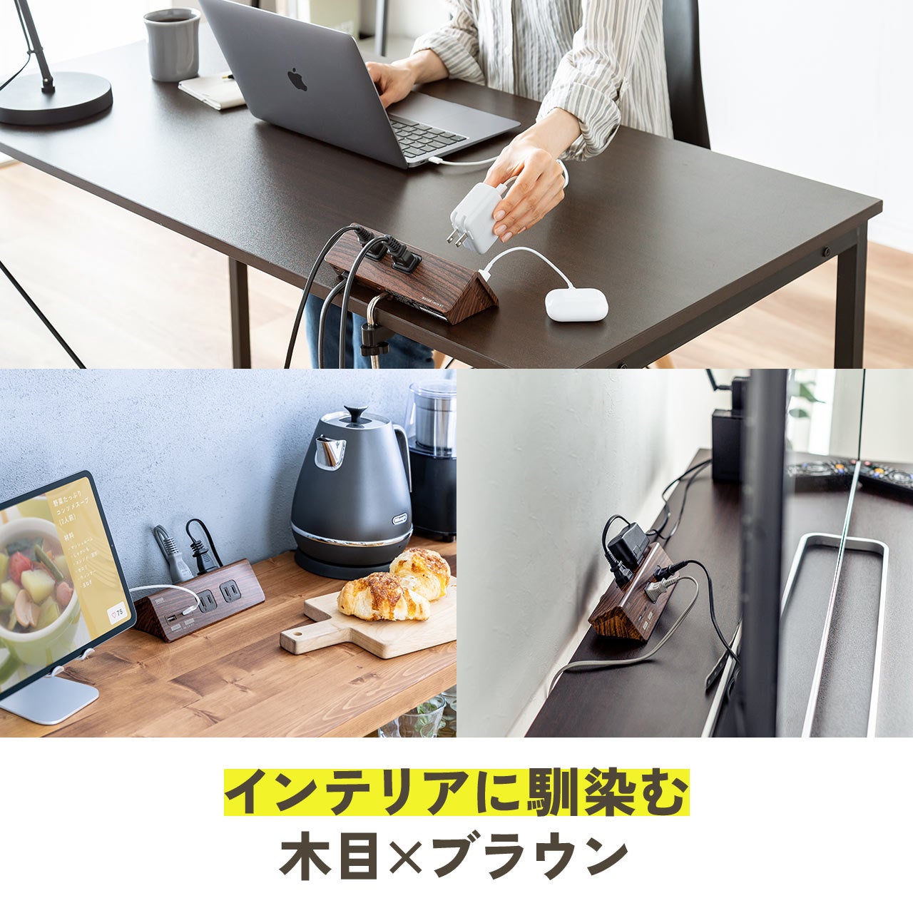 電源タップ USB充電 Type-C搭載 一括集中スイッチ 4個口 3m クランプ固定 木目を9月22日に発売