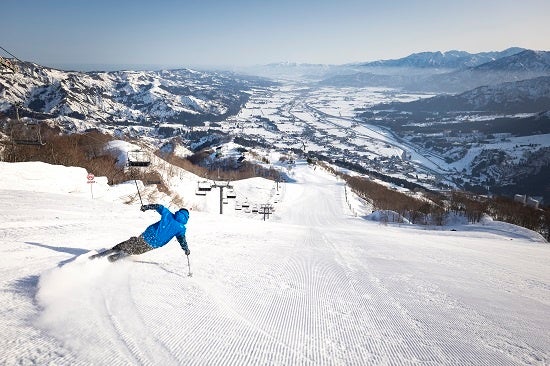 石打丸山スキー場は、スキー場総面積236ha、リフト数13基、高低差664m、最長滑走距離4,000mという関越道沿線上では最大級のスキー場です。越後の山々と魚沼平野を望む雄大な景色の中で楽しむ、日本海からの季節風がもたらす豊富な天然雪と、大自然が作り出した広大な地形を活かした23の多彩なコースは初級者から上級者まで幅広く愛されています。