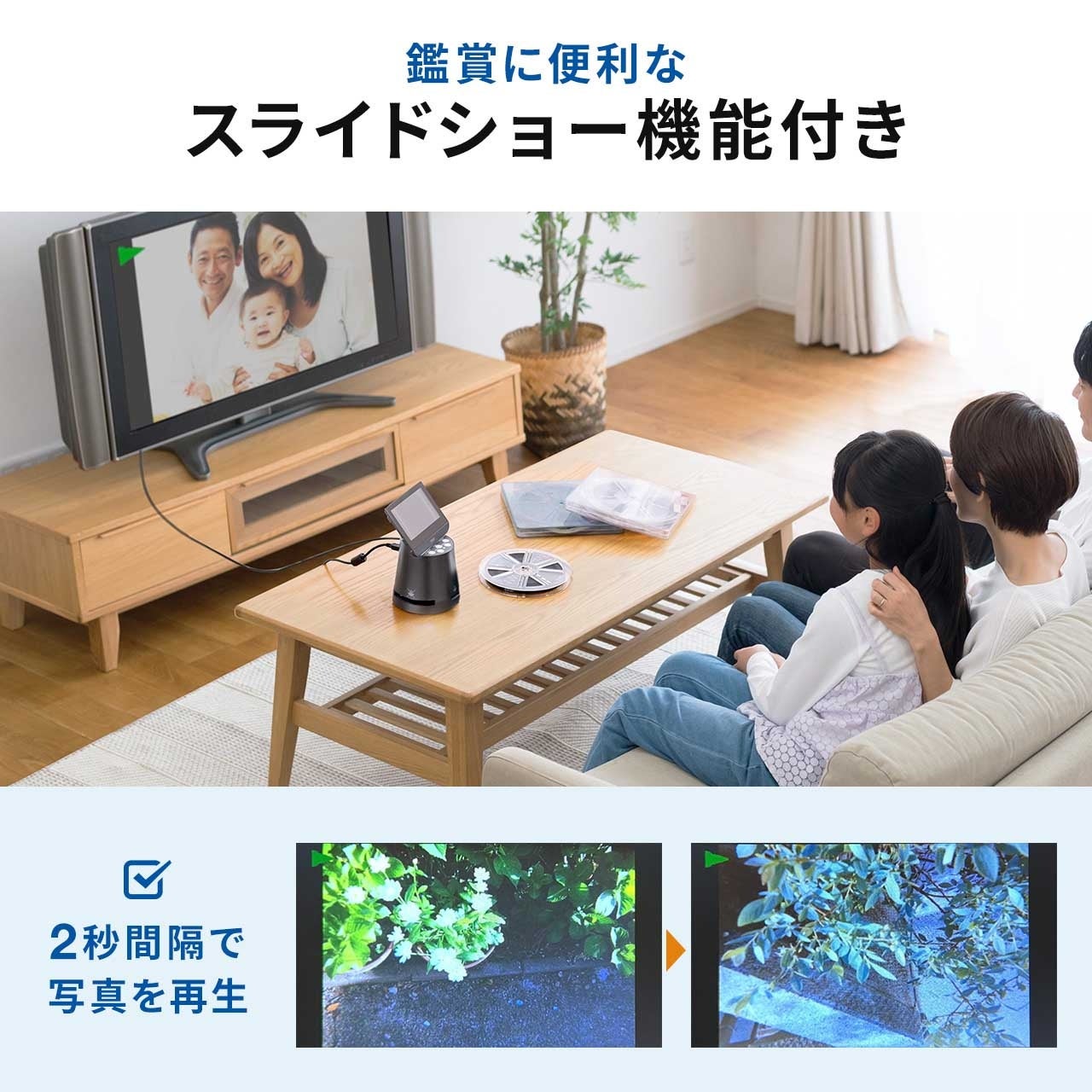 場所を取る大量のフィルムもデータ化すれば、コンパクトにSDカード保存ができます。HDMI出力対応で、テレビの大画面を見ながらスキャンしたり、スキャンデータを確認することができます。