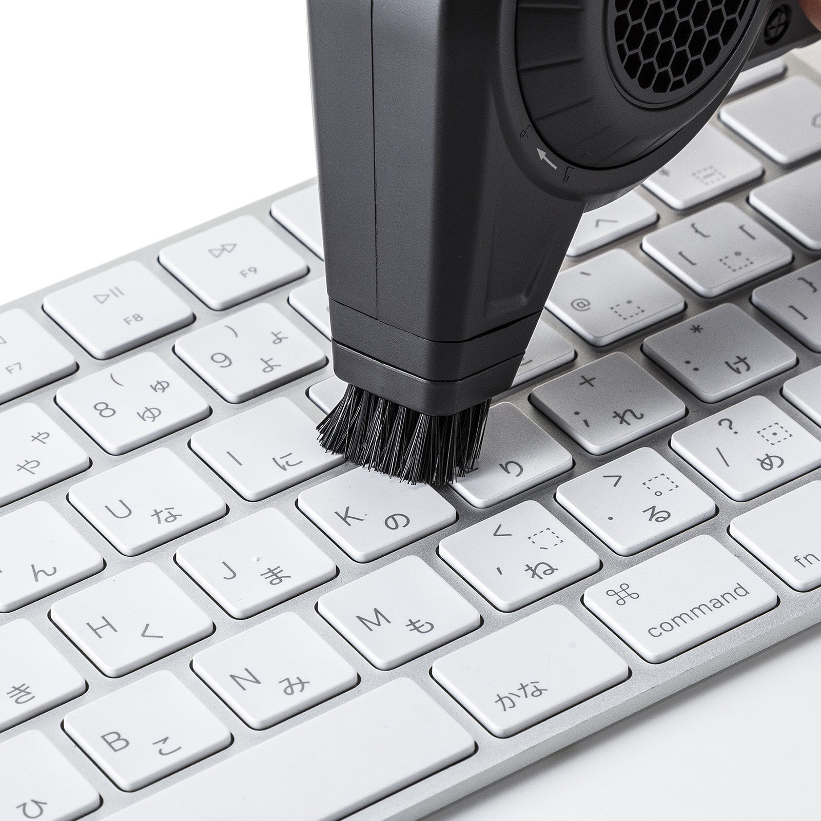 ブラシノズルが付いているため、キーボードなど細かい隙間のクリーニングにも便利です。