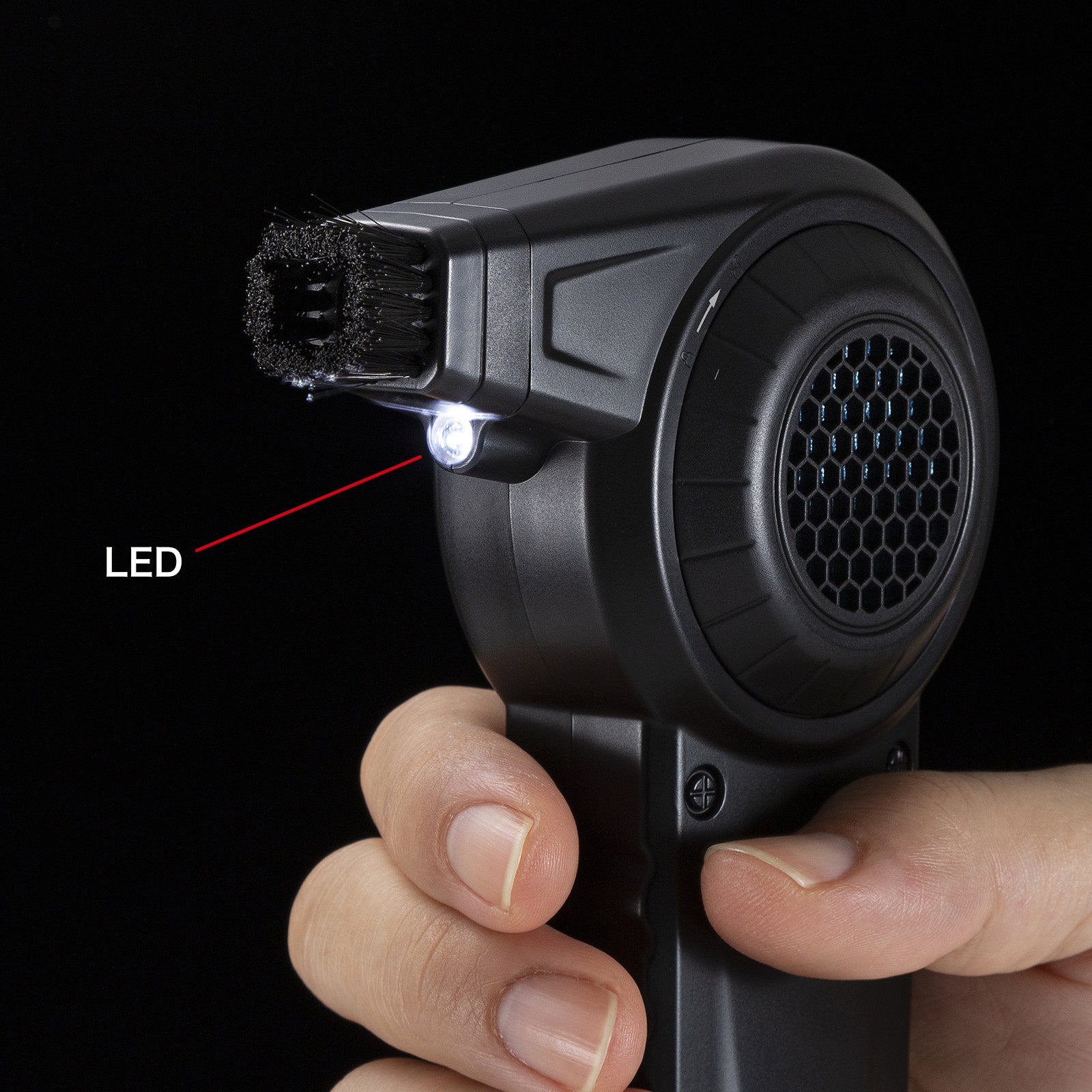 暗い場所で役立つLED付きで、パソコン内部や見えにくい隙間を照らしながら快適にお掃除できます。