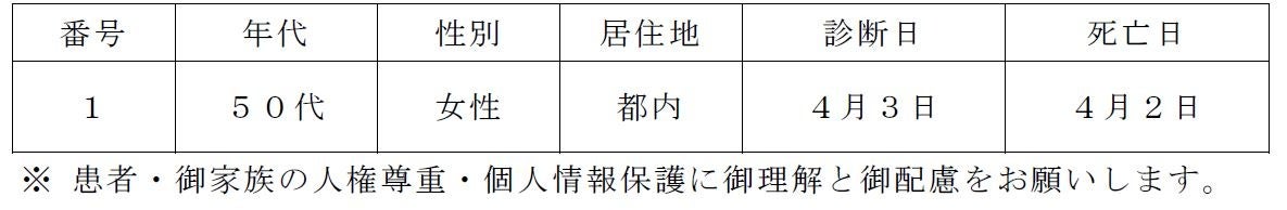 都内で新型コロナウイルスに感染した方が死亡されましたのでお知らせします。