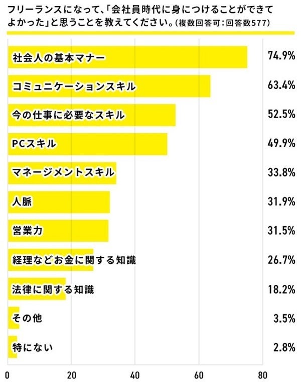 フリーランスになって役に立つのは「人脈」約30%に対して「基本マナー」が70%超