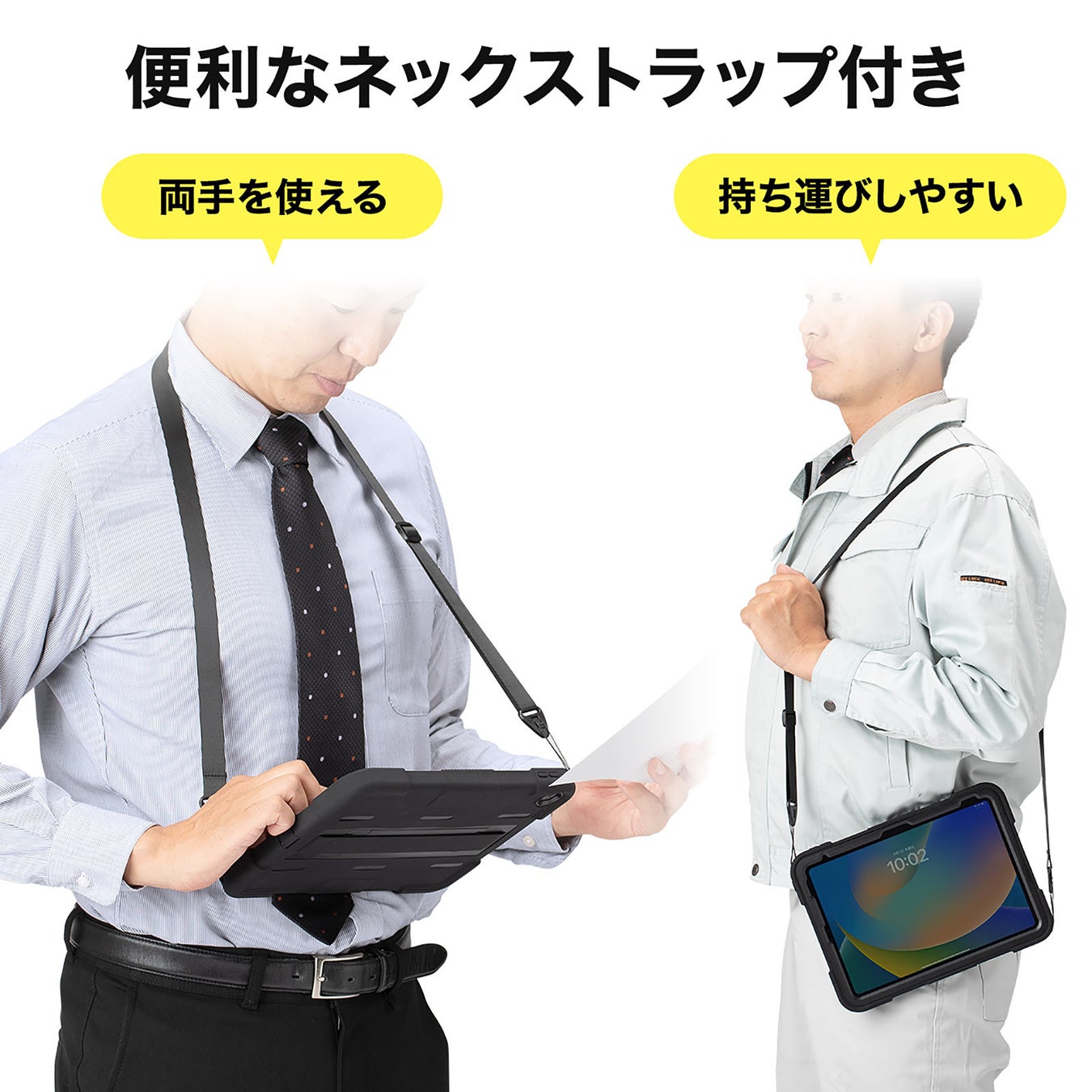 10.9インチiPad第10世代専用 防水ハードケース シリコンカバー 耐衝撃 IP68 防塵 完全防水 充電可能 全面保護 ネックストラップ スタンド ハンドベルト