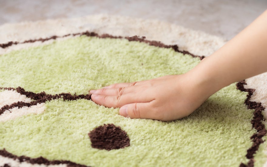 毛足の長いふわふわ素材のミニラグで、肌触りは抜群です。