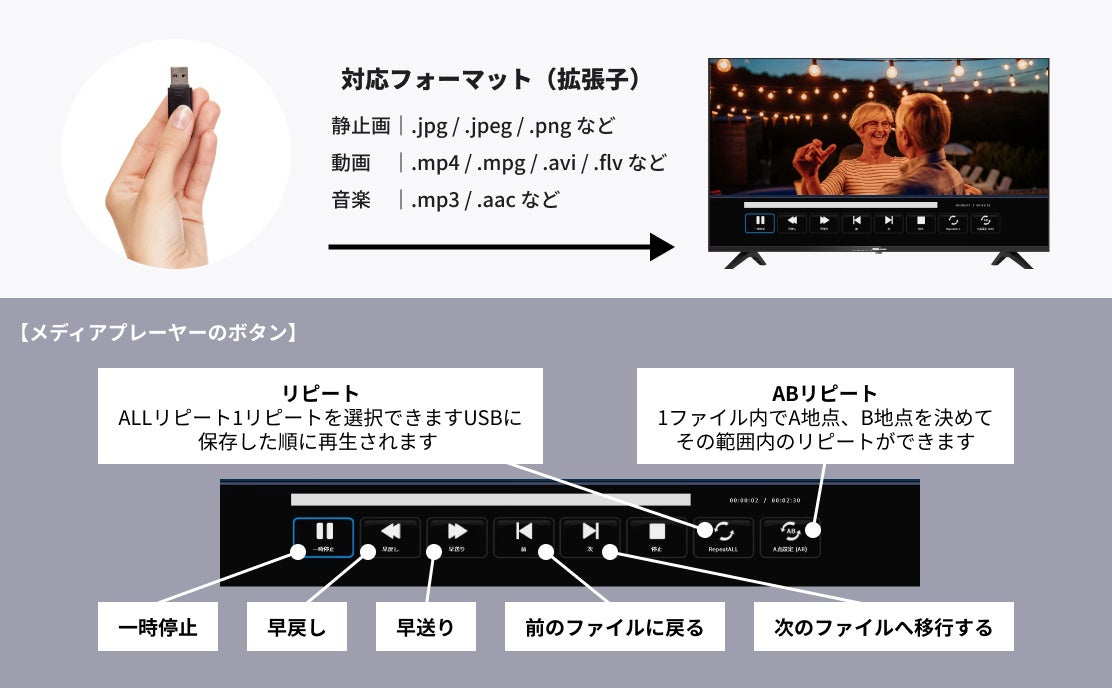 4. HDMI×3とUSBメモリーに保存した動画を直接再生可能なメディアプレイヤーを搭載