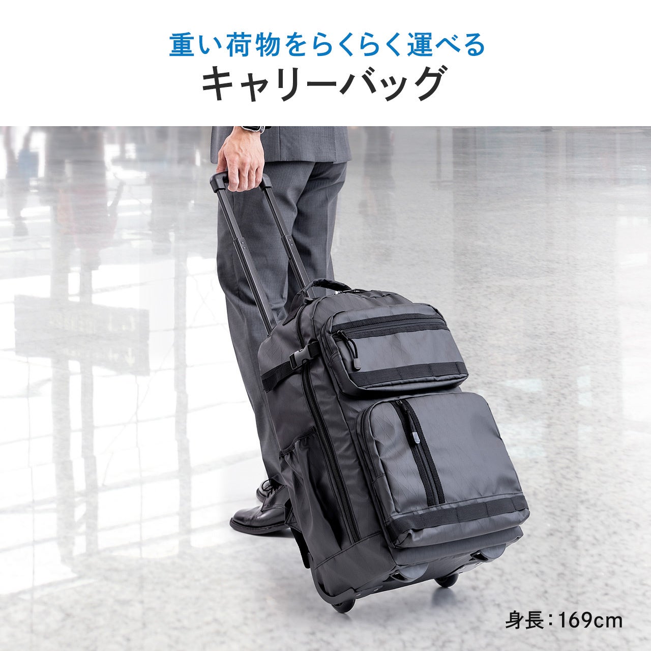 キャリーバッグとして使用すれば、空港や電車移動、出張時など重い荷物をラクに運ぶことができます。