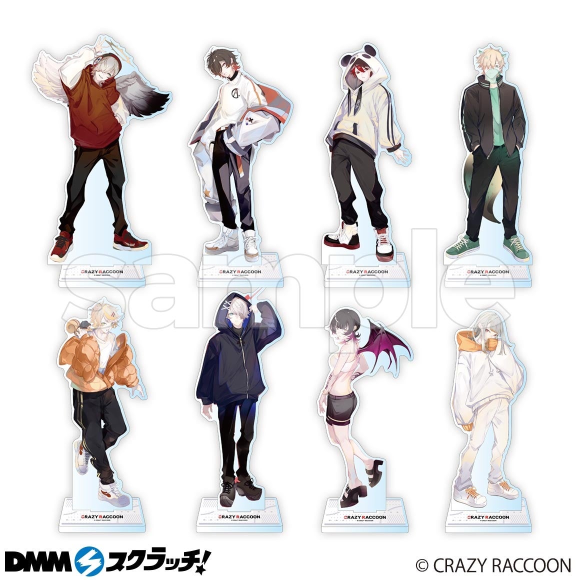 第四弾では、所属メンバーのうち、だるまいずごっど、天月、rion、うゅりる、Mainy、Mugi、Sitetampo Jr.、Tensai、計8名のグッズをご用意しています。Crazy Raccoon のファンにはたまらない限定グッズが盛りだくさん!