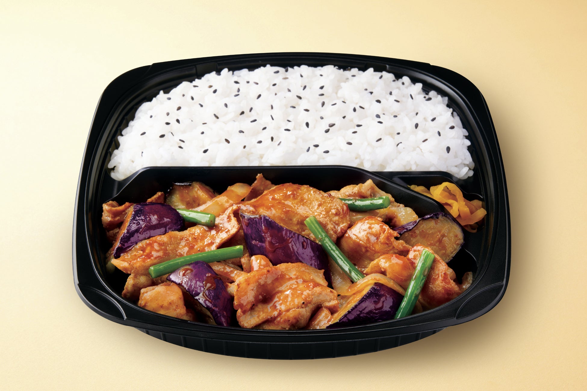 ・熊本県産なすを使用した「なすの辛味噌炒め弁当」は、なす本来の甘みと、八丁味噌を使用した辛味噌のピリッとした味わい。6月末まで、熊本県産の新鮮な「なす」を使用します。