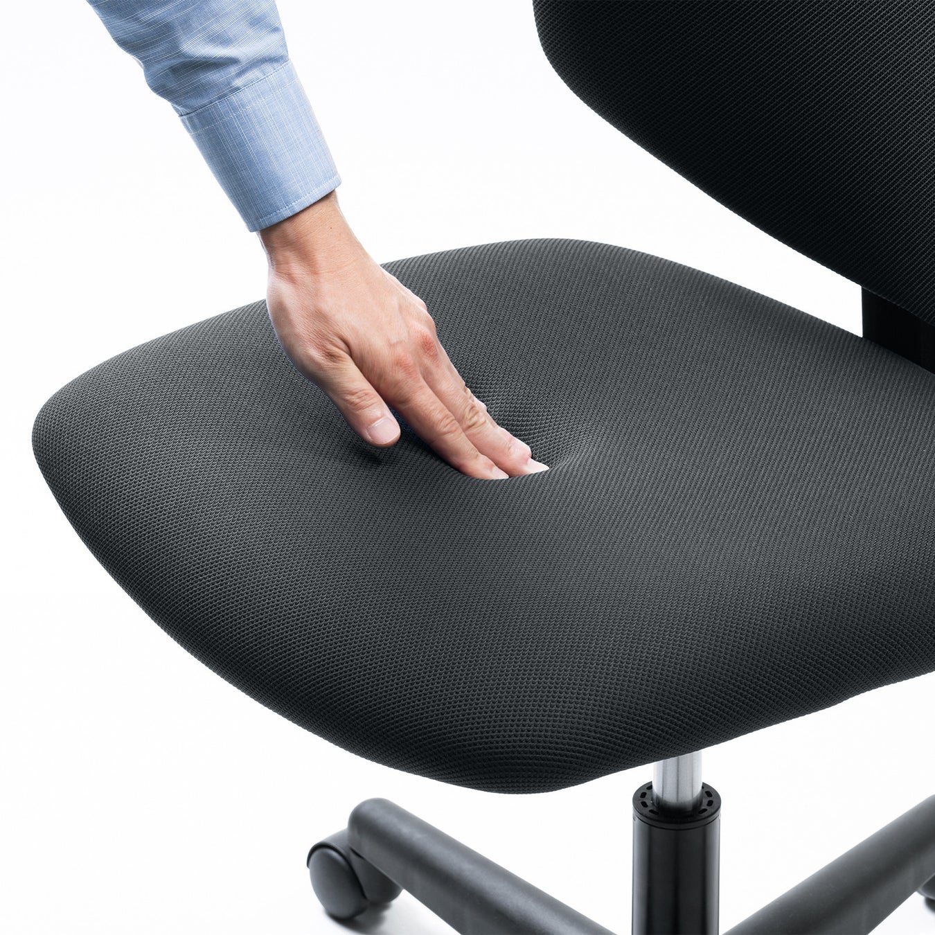 高負荷での試験をクリアした耐荷重150kgの高耐荷重仕様でありながら、サイズは幅620×奥行620×高さ875mmと、従来の高耐荷重チェアと比べてコンパクトタイプのため、オフィスや在宅ワークでの使用におすすめです。