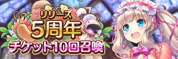 5周年を記念して毎日1枚ずつ、合計13枚まで『5周年10回召喚チケット』をプレゼント!