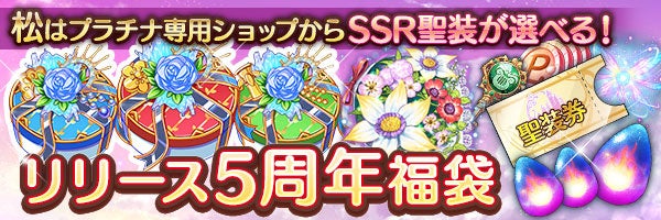 5周年記念のログインボーナスで、初日に蒼粒子2000個、2日目以降は聖錬素材・シラズの養水【SSR】等をプレゼント!