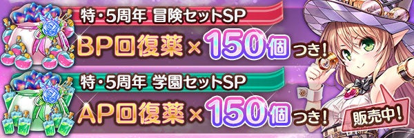 フレアライトとBP回復薬がセットになった、2種類の『特・5周年冒険セット』と