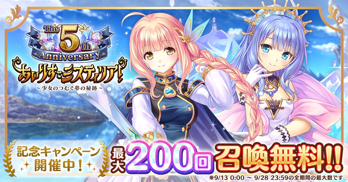2023年9月13日をもちまして、『あいりすミスティリア!』は5周年を迎えました!